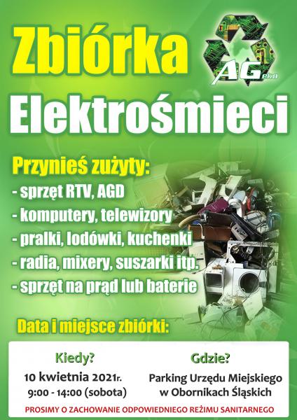 Szanowni Mieszkańcy ! Informujemy, że w dniu 10 kwietnia 2021 r. (sobota) w godz. od 9:00 do 14:00 na terenie Obornik Śląskich zostanie przeprowadzony bezpłatny odbiór zużytego sprzętu AGD i RTV*