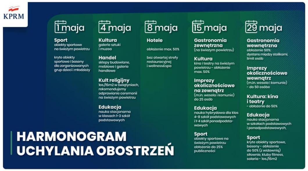 - Gastronomia: otwarcie gastronomii zewnętrznej (na świeżym powietrzu)