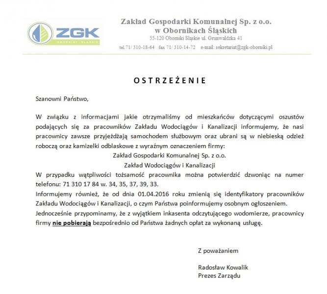 Przestrzegamy przed oszustami! | Oficjalny serwis Gminy Oborniki Śląskie