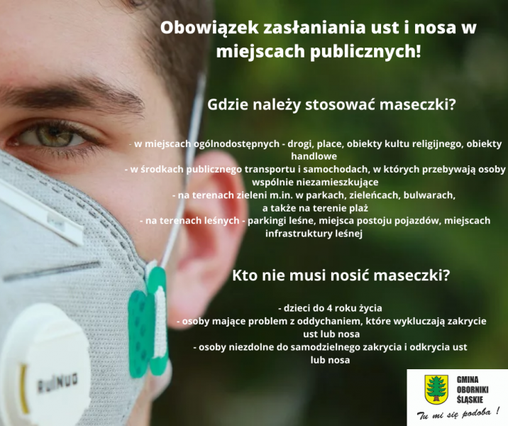 Przypominamy o obowiązku zasłaniania ust i nosa w miejscach publicznych! | Oficjalny serwis Gminy Oborniki Śląskie