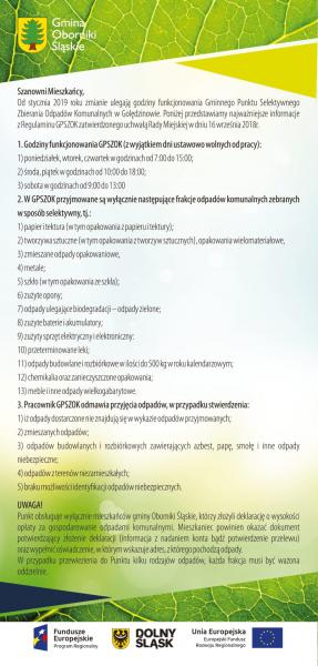 Przypominamy o zasadach segregacji odpadów i funkcjonowania PSZOK-u! | Oficjalny serwis Gminy Oborniki Śląskie