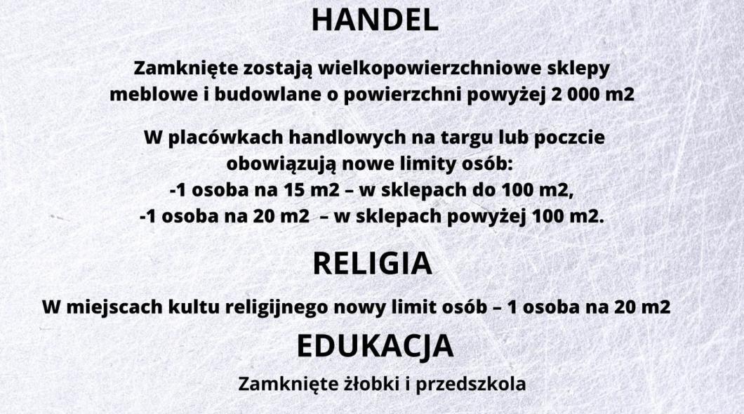 - Zostaną zamknięte wielkopowierzchniowe sklepy meblowe i budowlane o powierzchni powyżej 2 000 m2;