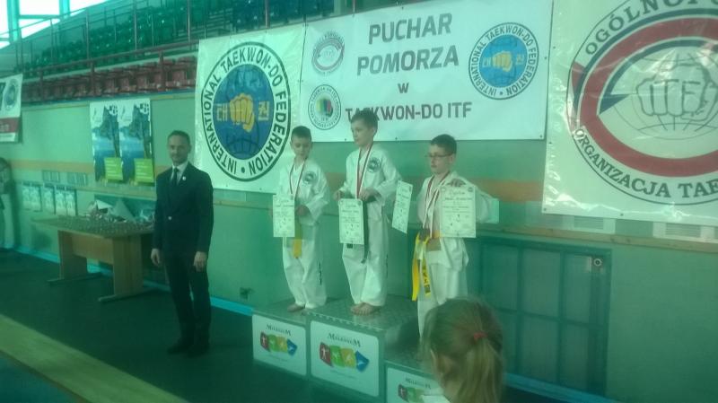 W dniu 2 kwietnia odbył się w Kołobrzegu Puchar Pomorza w Taekwon-do ITF. W imprezie uczestniczyli zawodnicy Klubu Sportów Walki „AVASATARE” Brzeg Dolny sekcja Oborniki Śląskie. Około dwustu zawodników z całej Polski przez cały dzień pokazywała swoje umiejętności na trzech matach, rywalizując w układach formalnych, technikach specjalnych i walkach. Oborniki Śląskie reprezentowało ośmiu zawodników z czego dwóch zajęło miejsca na podium. Michał Sapijaszko oraz Daniel Kasperkiewicz zdobyli srebrne medale. Michał w układach formalnych a Daniel w technikach specjalnych. Już teraz sekcja będzie przygotowywać się do zawodów w Nałęczowie, które odbędą się w czerwcu. Dzieci i rodziców zainteresowanych trenowaniem taekwondo zapraszamy w poniedziałki o 17.00 i czwartki o 19.00 do Głównej Hali Ośrodka Sportu i Rekreacji w Obornikach Śląskich oraz na facebooka https://www.facebook.com/taekwondoBrzegDolny
