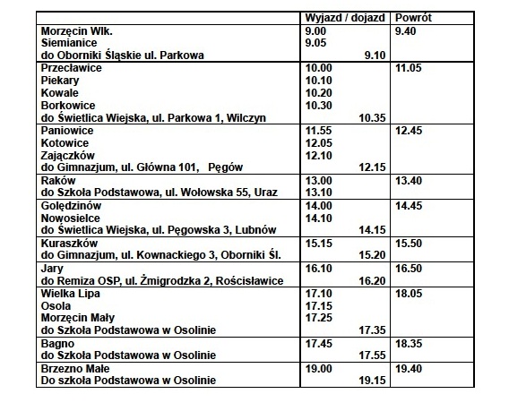 Rozkład jazdy Gimbusa podczas Wyborów 30 listopada 2014 | Oficjalny serwis Gminy Oborniki Śląskie