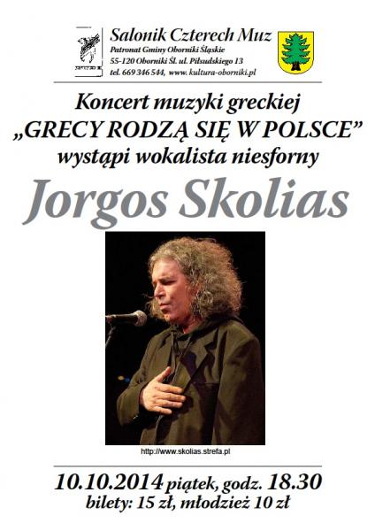 W piątek 10 października o godzinie 18.30 w Saloniku Czterech Muz wystąpi wokalista niesforny Jorgos Skolias