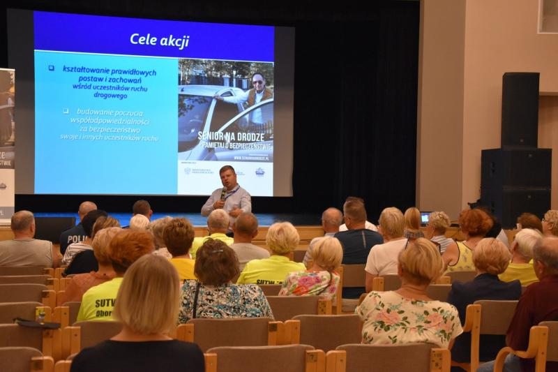 Bezpieczeństwo przede wszystkim! Senior na drodze - pamiętaj o bezpieczeństwie - pod takim hasłem odbyło się spotkanie z policjantami i ekspertem ds. ruchu drogowego. Tematem prelekcji było bezpieczeństwo na drogach naszej gminy. Konferencja pomogła uświadomić seniorów jak ważne jest przestrzeganie zasad bezpieczeństwa na naszych drogach by uniknąć wypadku. Każdy z uczestników spotkania miał szansę sprawdzić swój refleks poprzez miernik czasu reakcji, natomiast rowerzyści skorzystać z darmowego przeglądu swojego jednośladu.