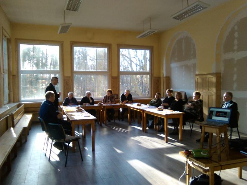 W drugiej części spotkania, na którym gościliśmy między innymi przedstawicieli Uniwersytetu Trzeciego Wieku Atena, Polskiego Związku Niewidomych koło Trzebnica i Klubu Seniora Dziarskie Bractwo z Jar, ale także osoby młode, zainteresowane bezpieczeństwem swoich bliskich, w czasie nieco ponad godziny przybliżałem uczestnikom szkolenia tematy współcześnie uważane przez sporą część seniorów za tabu. Mówiłem zarówno o tym, czym jest komputer, poczta e-majlowa, jak bezpiecznie korzystać z kart płatniczych, jak obsługiwać bankomaty i terminale płatnicze w sklepach, a także czy warto jest mieś konto w banku internetowym. Również podzieliłem się swoją wiedzą w zakresie archiwizowania na komputerach fotografii. Kilka dowcipów związanych z prezentacją na dużym ekranie rozbawiło naszych gości.
