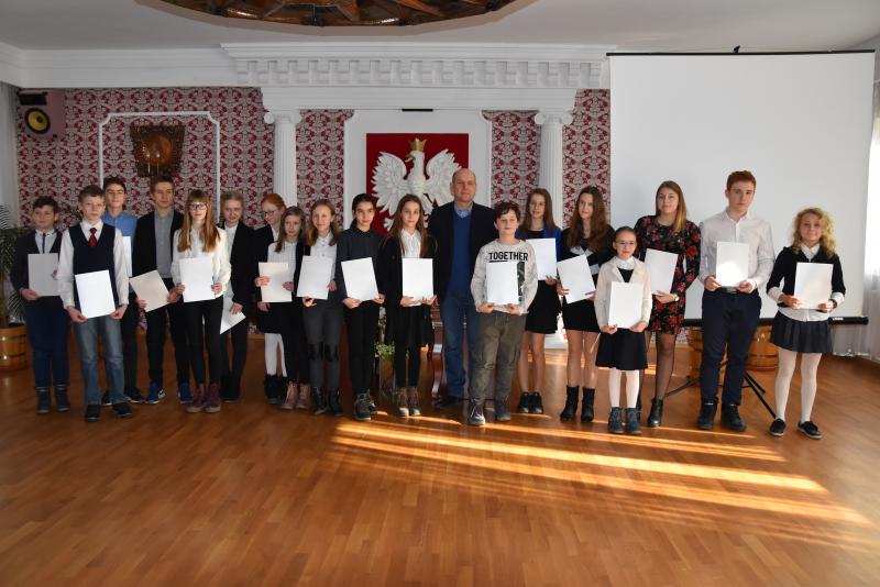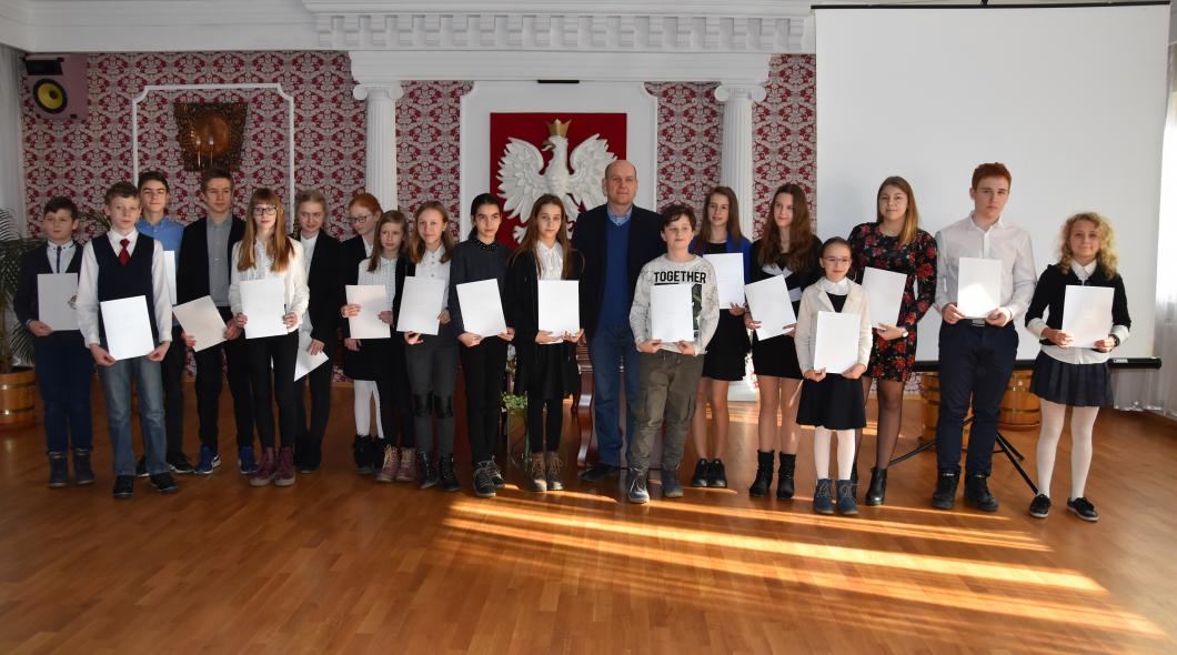 Burmistrz Arkadiusz Popprawa wręczył dzisiaj uroczyście w sali Urzędu Stanu Cywilnego stypendia 20 najlepszym uczniom szkół podstawowych w naszej gminie! Wręczane stypendia przyznane zostały w trzech dziedzinach: naukowe, artystyczne i sportowe. Wszystkim serdecznie gratulujemy!