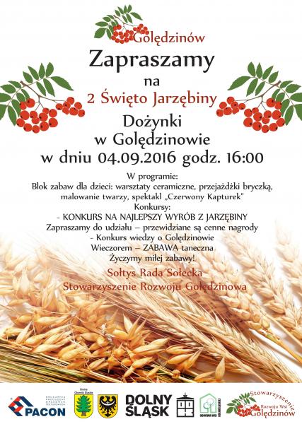 Zapraszamy na Święto Jarzębiny 4 września 2016 roku do Golędzinowa.