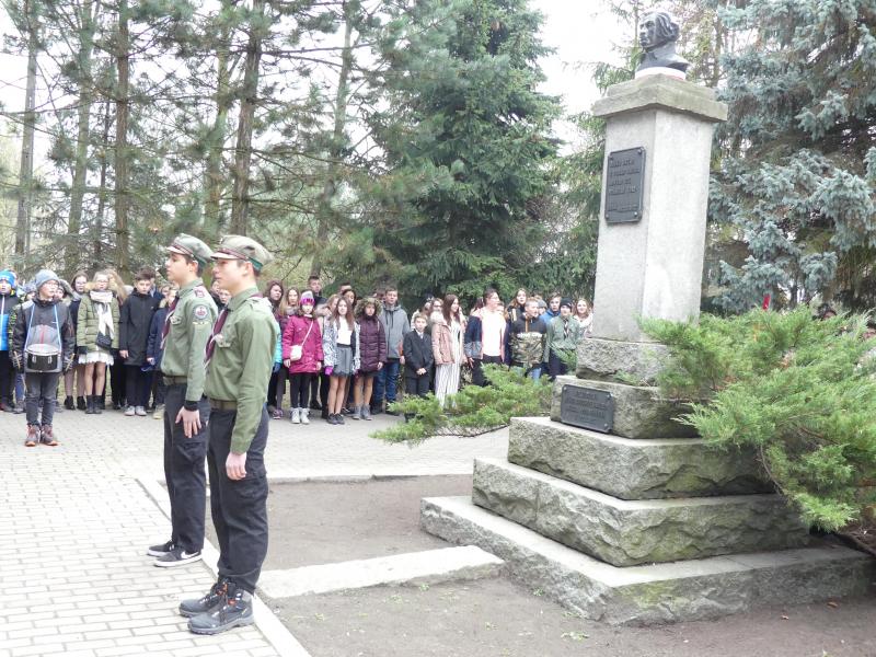 W dniu dzisiejszym Szkoła Podstawowa w Pęgowie obchodziła święto patrona szkoły - Adama Mickiewicza. Z okazji 163 rocznicy śmierci wieszcza Polski odbył się uroczysty apel. Po uroczystym złożeniu kwiatów przez delegacje pod pomnikiem wszyscy udali się na dalszą cześć obchodów do sali gimnastycznej. Uczniowie specjalnie na tę okazję przygotowali piękny występ artystyczny odnoszący się do twórczości Adama Mickiewicza. W uroczystości uczestniczyli Pani Starosta Powiatu Trzebnickiego Małgorzata Matusiak, Wicestarosta Grzegorz Terebun, Zastępca Burmistrza Obornik Śląskich Henryk Cymerman oraz licznie przybyli goście.