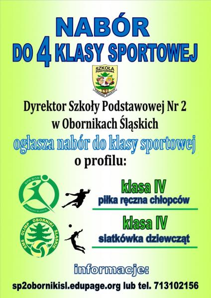Szkoła Podstawowa nr 2 ogłasza nabór do IV klasy sportowej. | Oficjalny serwis Gminy Oborniki Śląskie