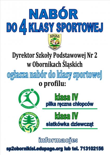 do 4 klasy sportowej o profilu piłki ręcznej dla chłopców i piłki siatkowej dla dziewcząt.