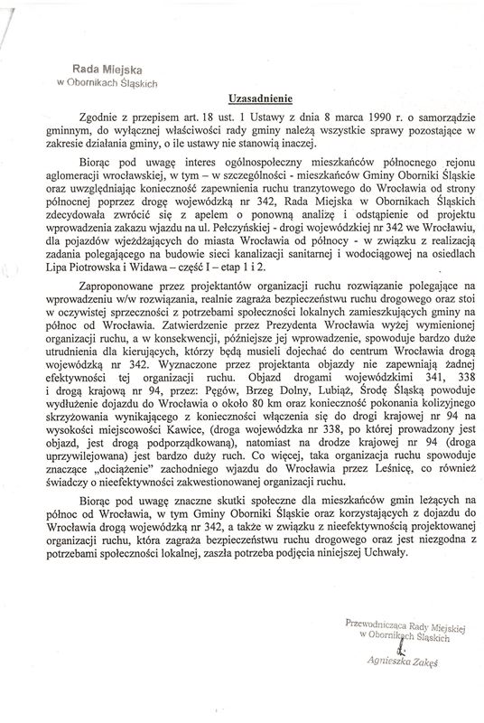 W związku z dużą ilością pytań odnośnie remontowanej we Wrocławiu ulicy Pełczyńskiej (droga wojewódzka nr 342), informujemy że w dniu 30 czerwca 2015 roku Rada Miejska podjęła uchwałę nr XI/85/15, której treścią był apel Radnych Rady Miejskiej w Obornikach Śląskich do Prezydenta Wrocławia o ponowną analizę organizacji ruchu na czas remontu wyżej wymienionej ulicy. Treść apelu dostępna jest na stronach BIP Urzędu Miejskiego w Obornikach Śląskich. Opierając się na informacjach z Urzędu Miejskiego we Wrocławiu, remont ul. Pełczyńskiej potrwa od 11 lipca do 31 sierpnia 2015 roku. Wszelkie informacje o planowanych objazdach odnajdą Państwo na stronach Urzędu Miejskiego we Wrocławiu.