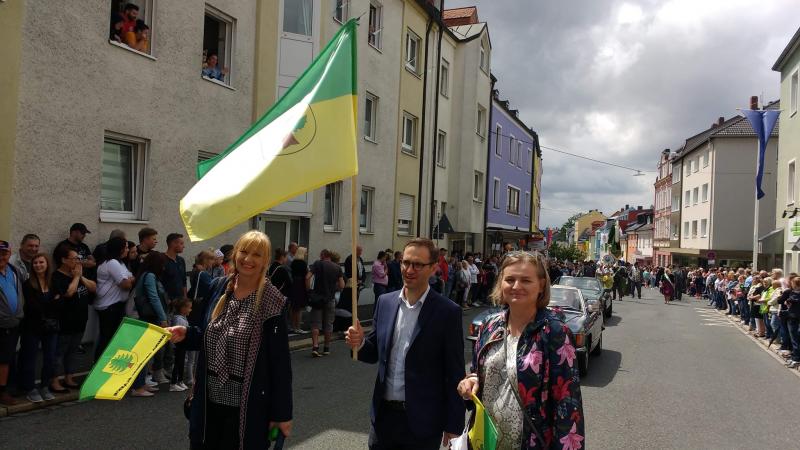W miniony weekend oficjalna delegacja z naszej gminy pojechała do partnerskiego miasta Rehau na Dni Rehau (Heimat- und Wiesenfest Rehau). Burmistrz Obornik Śląskich Arkadiusz Poprawa, były Burmistrz Obornik Śląskich Paweł Misiorek, Przewodnicząca Rady Miejskiej Agnieszka Zakęś, Radni Rady Miejskiej Hubert Ozimina i Tomasz Gibalski wzięli udział w paradzie ulicami miasta. Wspólne świętowanie i długie rozmowy zacieśniają współpracę naszych miast. Jest nam bardzo miło, że nasze barwy i herb widnieją na ulicach Rehau.