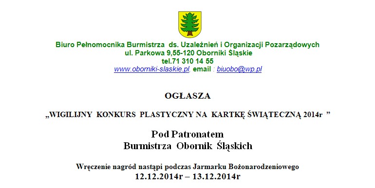„WIGILIJNY KONKURS PLASTYCZNY NA KARTKĘ ŚWIĄTECZNĄ 2014r ” | Oficjalny serwis Gminy Oborniki Śląskie