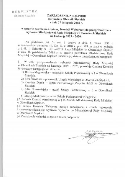 Burmistrz Obornik Śląskich powołał Gminną Komisję Wyborczą do przeprowadzenia wyboru Młodzieżowej Rady Miejskiej w Obornikach Śląskich na kadencję 2019 - 2020. Wybory Radnych zostaną przeprowadzone na początku przyszłego roku.