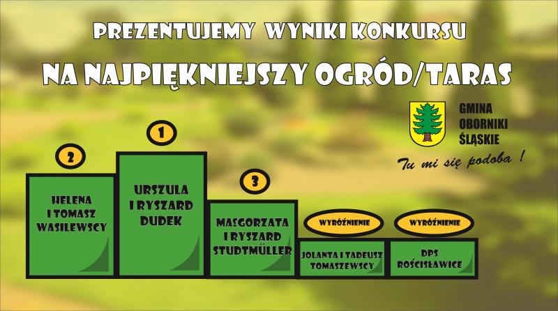 Znamy wyniki konkursu na najpiękniejszy ogród/taras w Gminie Oborniki Śląskie.