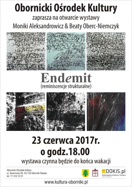 Opis wystawy znajduje się na stronie: http://kultura-oborniki.pl/ook/23-06-2017-wernisaz-wystawy-malarstwa-endemit-reminiscencje-strukturalne-moniki-aleksandrowicz-i-beaty-oberc-niemczyk/