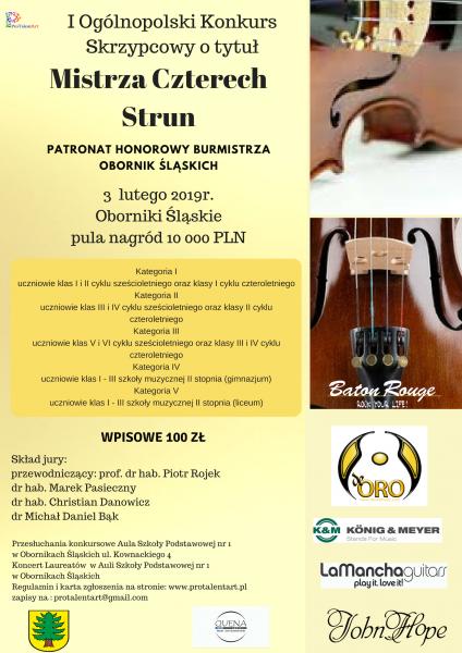 Zapraszamy do udziału w V Ogólnopolskim Konkursie Gitarowym o tytuł Mistrza Sześciu Strun oraz I Ogólnopolskim Konkursie Skrzypcowym o tytuł Mistrza Czterech Strun.