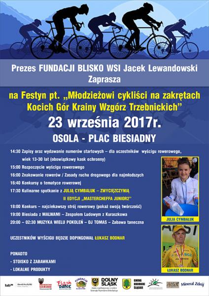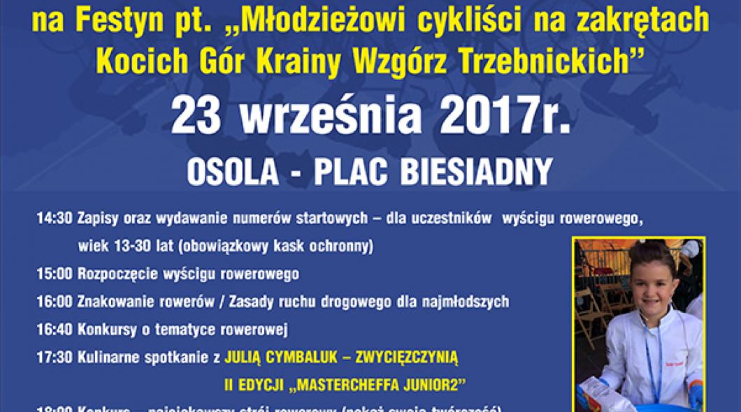 Zapraszamy na festyn do Osoli pn. "Młodzieżowi cykliści na zakrętach Kocich Gór Krainy Wzgórz Trzebnickich"