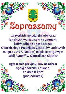 Gmina Oborniki Śląskie 16 lipca 2016 roku organizuje I Obornicki Festiwal Zespołów Ludowych. Już dzisiaj zapraszamy wszystkich wystawców do wzięcia udziału w JARMARKU PRODUKTU LOKALNEGO!