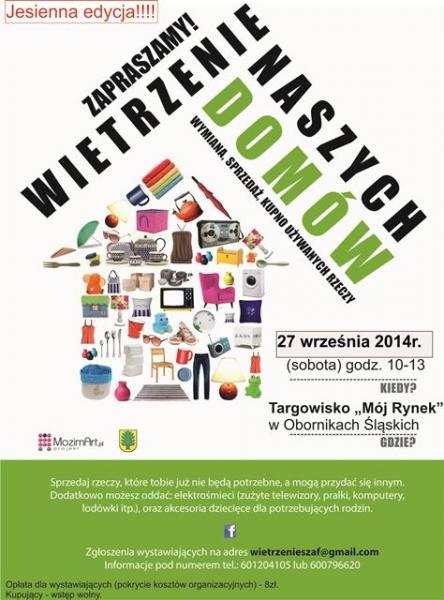 Już 27 września 2014 roku na Targowisku "Mój Rynek" rusza kolejna edycja Wietrzenia Naszych Domów. Start godzina 10.00