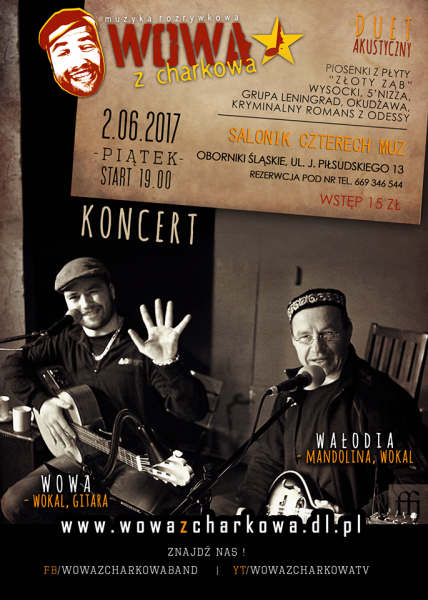 Zapraszamy na koncert "Wowa z Charkowa" 2 czerwca 2017 roku o godz. 19.00 w Saloniku Czterech Muz!