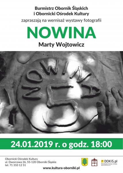Zapraszamy na otwarcie wystawy fotografii autorstwa Marty Wojtowicz pt. "Nowina" do Obornickiego Ośrodka Kultury 24 stycznia 2019 r. o godz. 18.00.