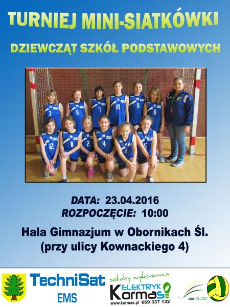 Zapraszamy na Turniej Mini - Siatkówki Dziewcząt Szkół Podstawowych z Gminy Oborniki Śląskie.