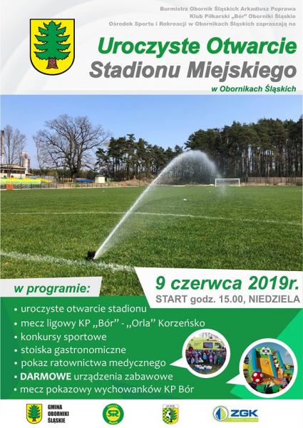 Burmistrz Obornik Śląskich Arkadiusz Poprawa, Klub Piłkarski "Bór" Oborniki Śląskie oraz Obornicki Ośrodek Sportu i Rekreacji zaprasza wszystkich sympatyków piłki nożnej, kibiców oraz całe rodziny na Uroczyste Otwarcie Stadionu ⚽️