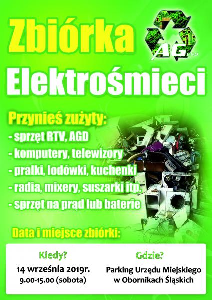 Szanowni Mieszkańcy ! Informujemy, że w dniu 14 września 2019r. (sobota) w godz. od 09:00 do 15:00 na terenie Obornik Śląskich zostanie przeprowadzony bezpłatny odbiór zużytego sprzętu AGD i RTV*
