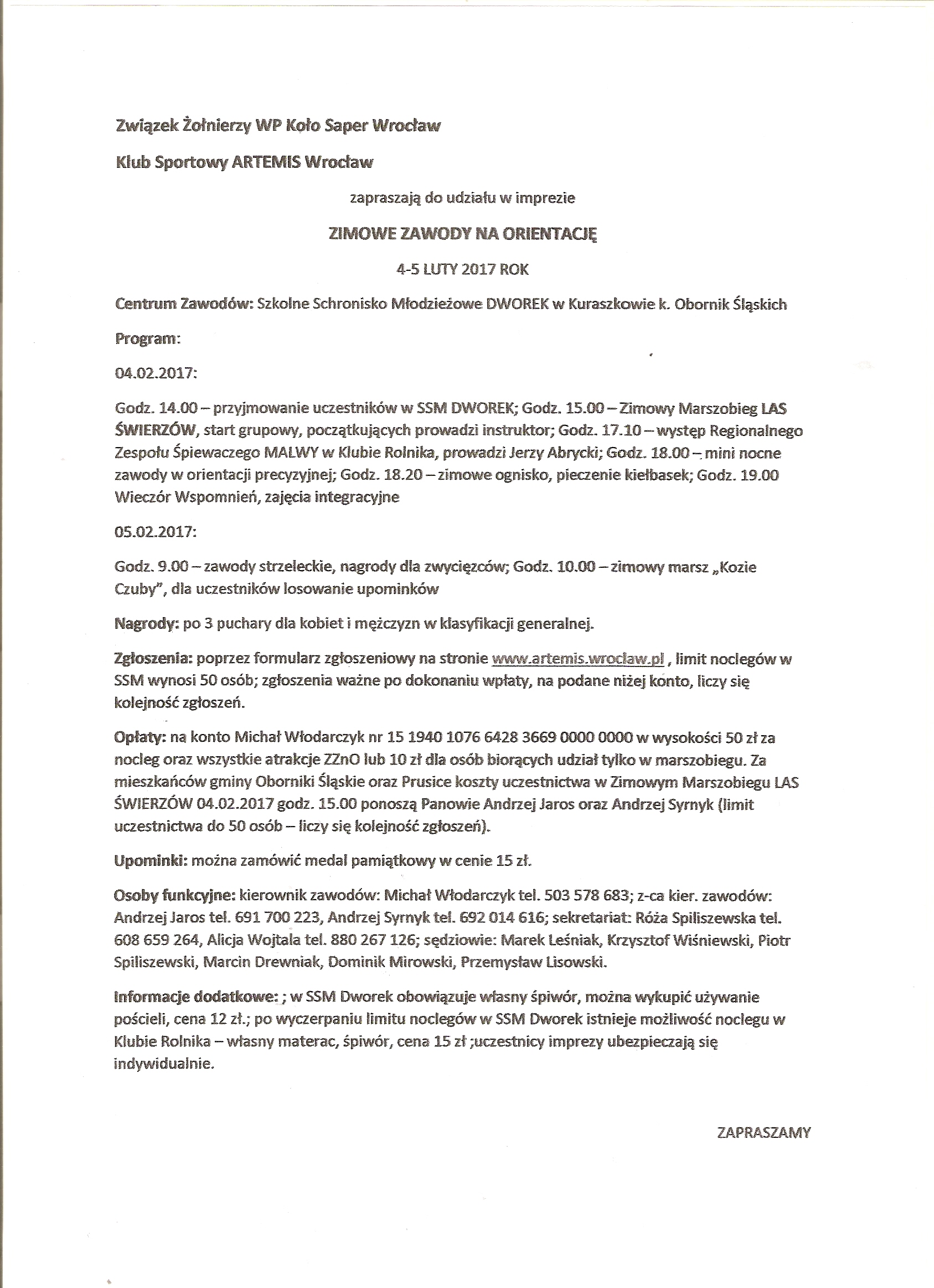 Zapraszamy wszytkich bardzo serdecznie na Zimowe Zawody na Orientację, które odbędą się w weekend 4-5 lutego w Kuraszkowie. Jest to kolejna ciekawa propozycja na aktywne spędzenie zimowego weekendu. Więcej informacji na temat rajdu znajduje się w załączniku.