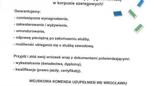 Wojskowa Komenda Uzupełnień we Wrocławiu prowadzi nabór do służby przygotowawczej!