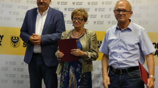Zastępca Burmistrza Henryk Cymerman odebrał dzisiaj w Urzędzie Marszałkowskim Województwa Dolnośląskiego z rąk Marszałka Cezarego Przybylskiego i Wicemarszałka Ewy Mańkowskiej promesę dla Gminy Oborniki Śląskie.