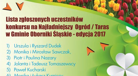 Lista zgłoszonych uczestników do konkursu na Najładniejszy Ogród/Taras