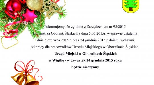 Urząd Miejski w Obornikach Śląskich 24 grudnia 2015 roku będzie nieczynny!