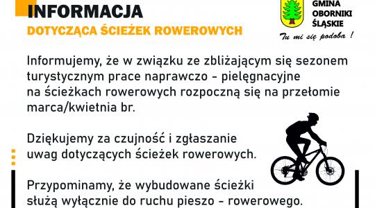 Prace naprawczo - pielęgnacyjne na ścieżkach rowerowych rozpoczną się na przełomie marca/kwietnia br.