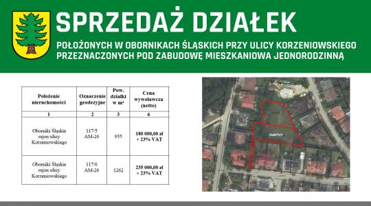 Sprzedaż działek pod zabudowę mieszkaniową jednorodzinną w Obornikach Śląskich