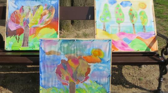 Warsztaty artystycznego malowania na jedwabiu w Obornickim Ośrodku Kultury.